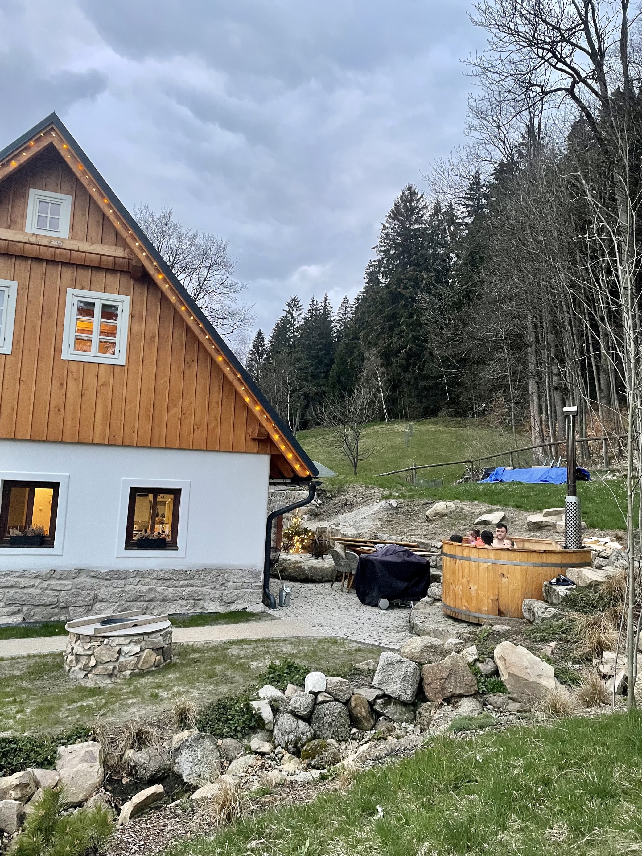 We verbleven in één van de mooie villa’s van CeskySight, in het kleine bergdorpje Lučany nad Nisou, op zo’n 20 minuten rijden van de stad Liberec. Het huis was schitterend en van alle luxe voorzien. Zo konden de kinderen Netflix en Disney+ kijken via een beamer en stond er een heuse hottub in de tuin. Alles was enorm sfeervol ingericht en huiselijk, waardoor we ons meteen thuis voelden.